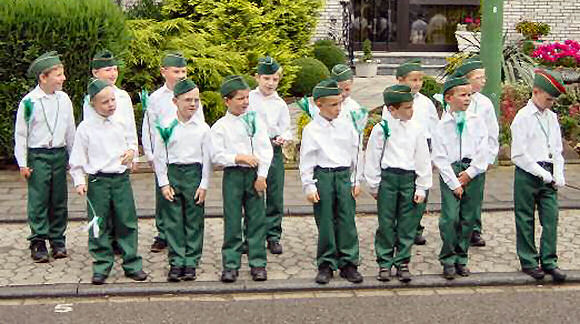 Der Wimpel wurde von Maria und Peter Wolf entworfen, bemalt, genäht und am 29.06.1995 der Gruppe – Grüne Hütchen - gestiftet.