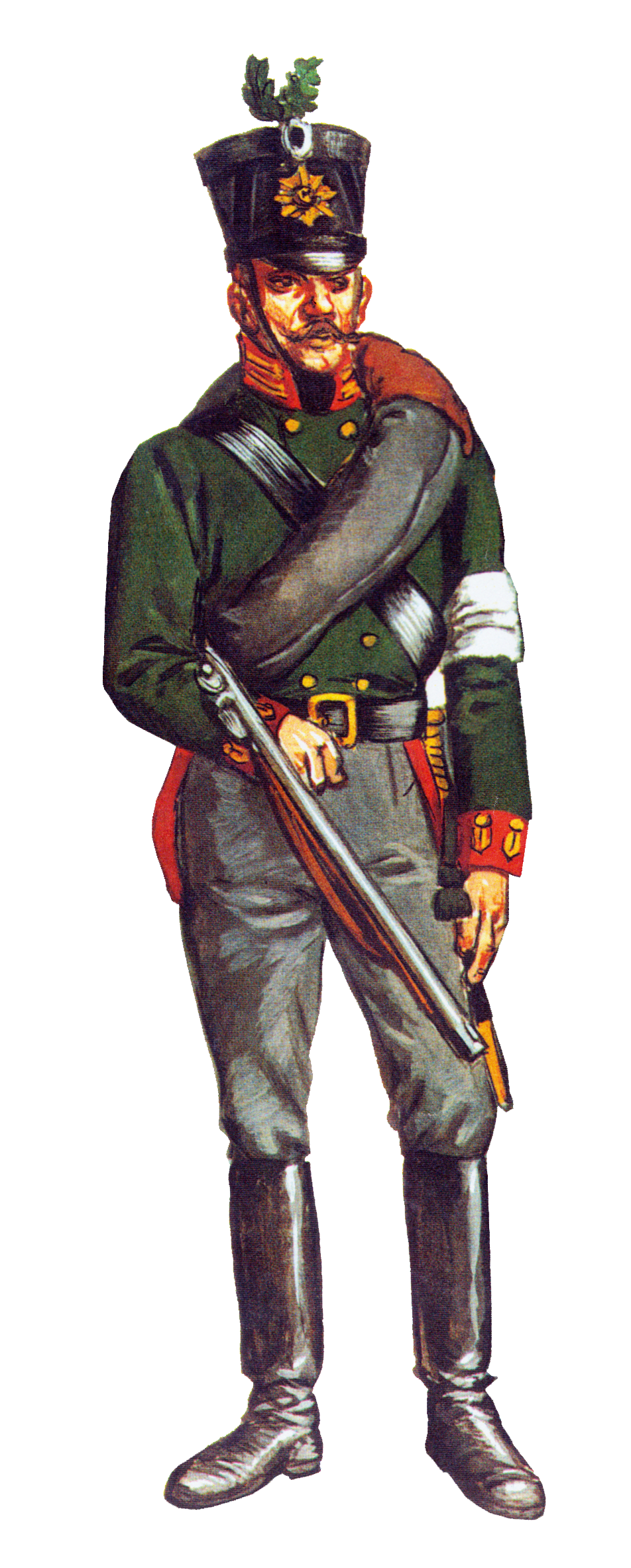 2011 beschlossen wir dann einen ganz anderen, neuen Weg einzuschlagen. Es wurde heiß diskutiert und unser damaliger Zugführer Thomas Becker und unser damaliger Kassierer Stefan Schiffer standen vor einem Mammut-Projekt. Wir entschieden uns originale historische GARDE JÄGER-Uniformen anzuschaffen. Mit Bravour meisterten die beiden diese Aufgabe und nicht nur wir finden, dass sich diese Uniform echt sehen lassen kann.