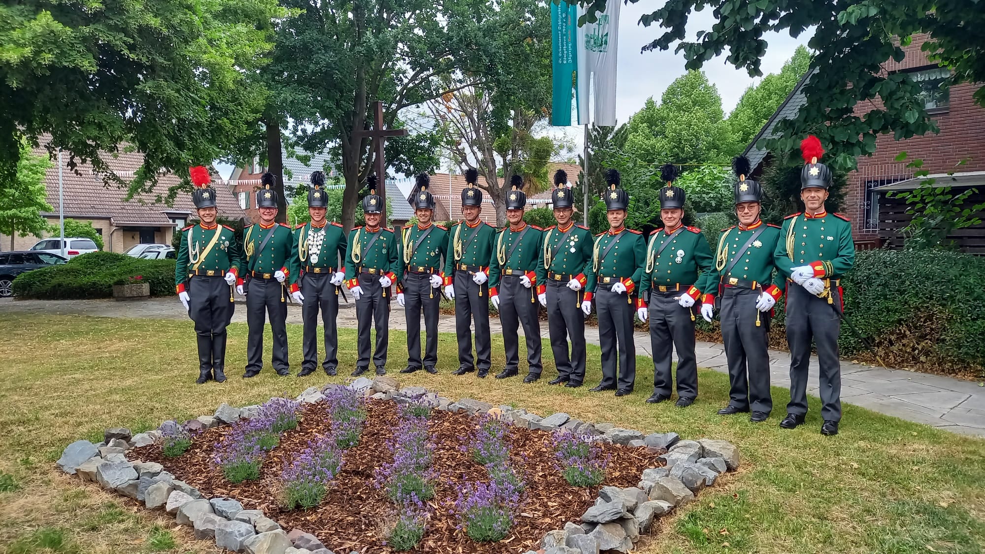 Seit Jahren pflegen wir das Kriegerdenkmal, dies mit Unterstützung unseres Ehrenbrudermeisters Willy Moll, der dafür sorgte, dass ein neues Kreuz, neue Tische und neue Bänke sowie ein Lavendel-Beet zur Gestaltung hinzugefügt wurden. Wir bedanken uns auch bei Erwin Martens für das Königshovener Wappen vor dem Kriegerdenkmal. Und jüngst, anlässlich der Hochwasserkatastrophe 2021 an Ahr und Erft, waren wir schnell zur Hilfe, denn die „Königshovener Hochwasserhilfe“, die immer noch im Flutgebiet hilft, resultiert aus den Reihen der Garde Jäger.