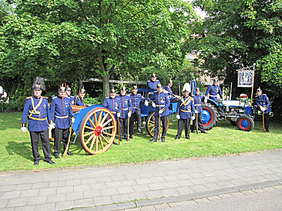 Im April 2002 ging es mit Schwung daran, die verschiedenen Aufgaben, die ein historischer Traditionszug mit besonderem fahrbaren Untersatz und scharfer Munition mit sich bringt, zu verteilen. Zuerst wurde für die neuen Uniformen Maß genommen, da statt jägergrün jetzt artillerieblau angesagt war. Bereits 6 Wochen vor dem Schützenfest hieß es für uns, die technischen Funktionen des Traktors und des Geschützes zu überprüfen und uns damit vertraut zu machen, damit zum großen Tag auch alles reibungslos funktioniert.